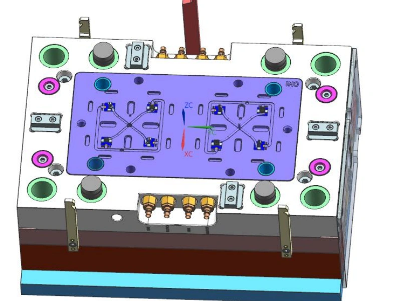 When designing molds for high-temperature plastics it’s important to include heat transfer channels as well as use thermal pins to ensure the plastic cools evenly during the injection molding process. Additionally, selecting the right mold material is essential for creating parts that can withstand extreme temperatures without warping or cracking. In this project, we used steel of S136 with HRC 52~54, the production volume is very high, 100000pcs parts were needed each day, so we used 8 cavity mold and make many copy ones to meet the quantity request. For cooling, it is cooled by oil and the mold temperature reach to 120 degree. The cycle time is 9 seconds and we used 2 step ejection for parts release. This part will be heat treated after molding.